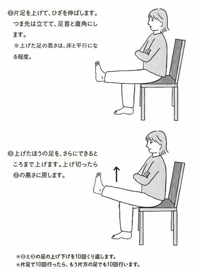 けれども、トレーニングを続けるうちに少しずつ筋肉がつき、いまでは何十分も歩けるようになったという方がたくさんいます(トレーニング方法は下の図解をご覧ください)。