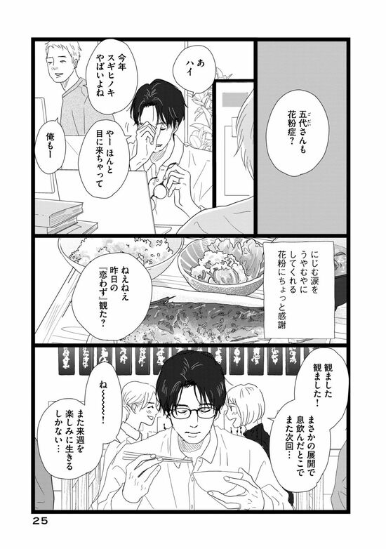 花粉症を理由に、職場で涙を隠す敦史。