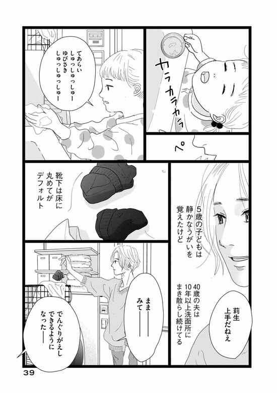 今日も汚… 【3】 【4】 「4歳の子よりも40歳の夫はガサツでだらしがなくて 何度言っても何年経っても変わらない」 毎日成長していく莉生に比して、変わることがない敦史。 紗綾が向ける眼差しの冷たさが増していく。