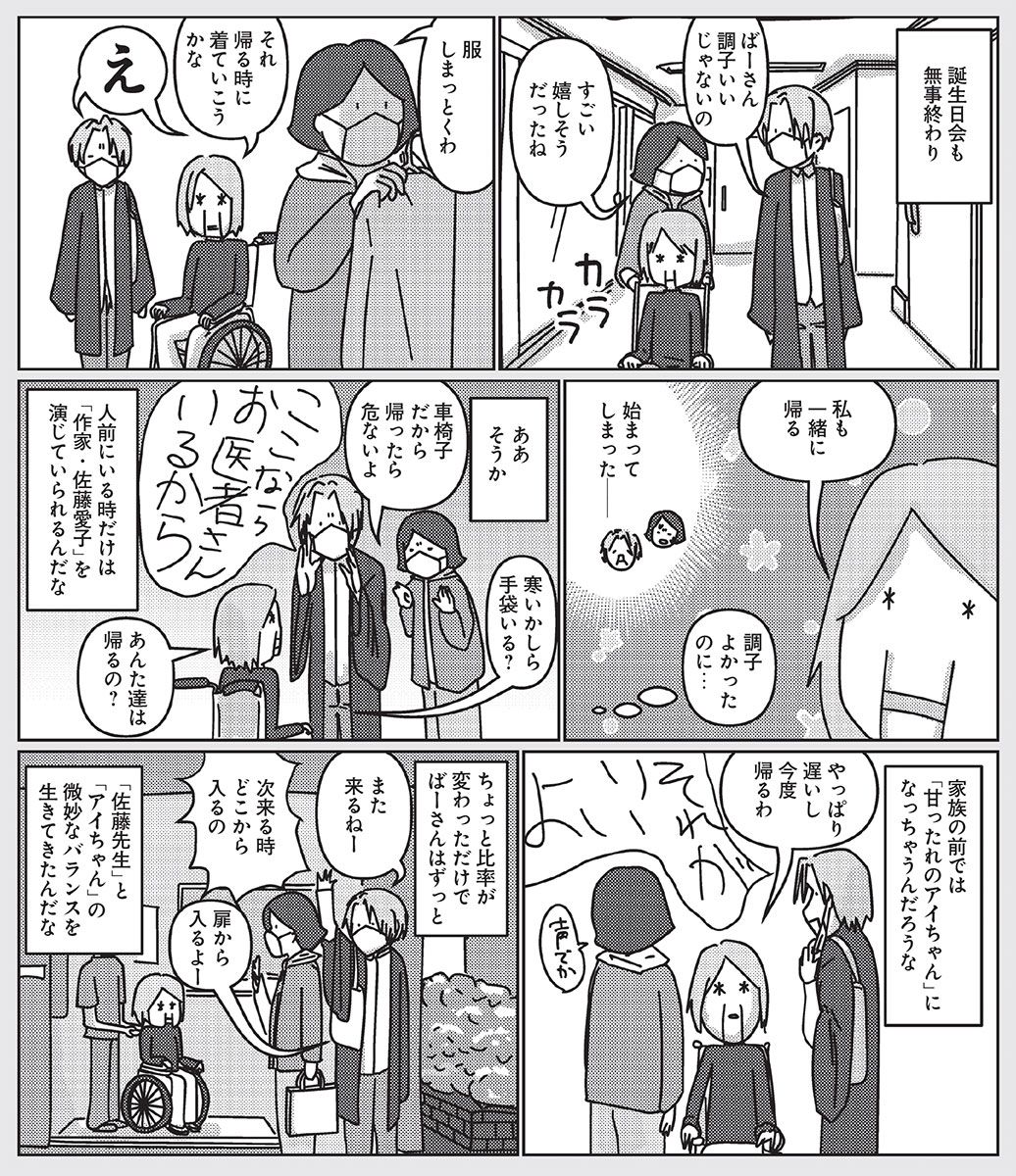 この日の祖母は「社会性のある祖母」だった。祖母を丁寧に扱ってくれるスタッフさんと、佐藤愛子を知ってくれている友人方のおかげで、祖母はまだ作家としての自分を忘れないでいられている。