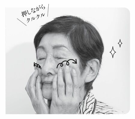 4本の指の腹を肌に軽く押し当てます。皮膚を動かすのではなく、内側を動かす意識でクルクルと小さく円を描くように指を滑らせていきます。