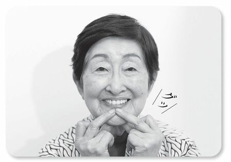 口角を引き上げる (1)両手の中指をあごの中央に当て、グッと力を入れて歯茎を押す。 (1)歯茎を押す すべての写真を見る (2)あごの中央から、左右の唇の端に指先を滑らせて口角を引き上げる。 (2)口角を引き上げる