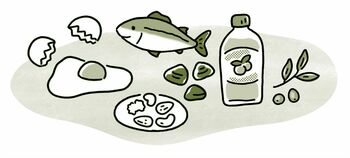 食物繊維をはじめ多品目をバランスよく食べながら、脳の働きを高める食材(上図)も取り入れて。