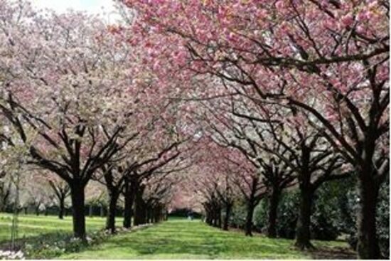 また、桜見本園は一般開放されており、世界中から収集した約350品種、1,000本の桜が次々と開花していく様子を見学することができます。中でも、約10品種の桜が一斉に開花する八重桜の並木道「十色桜の並木」は必見です。