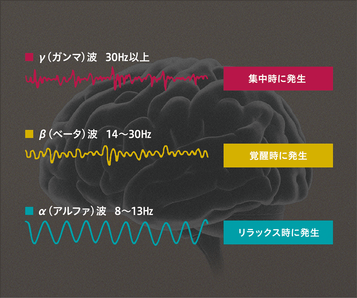 2016年および[5]2019年に米国マサチューセッツ工科大学の神経科学者ツァイ・リーフェイ博士らの研究グループが、40Hzの周波数の音と光の刺激によりマウスの脳内にガンマ波を発生させ、認知機能改善の可能性を示す研究論文を発表しました。[6]ガンマ波とは、脳内で発生する電気的な5種類のリズム(脳波)の1つで、脳が高度な認知機能を発揮しているときにあわられているとされる脳波です。
