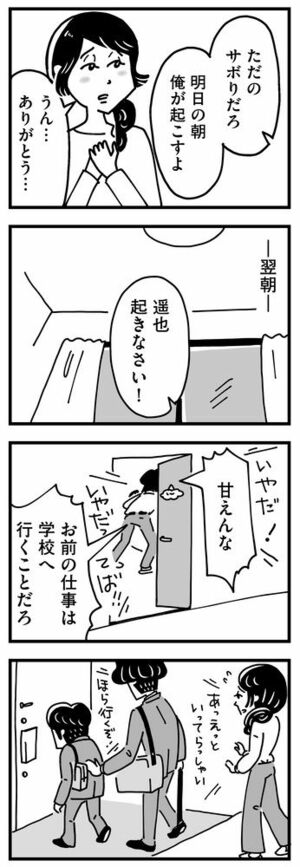 「学校の全てがなんとなく嫌」息子が突然不登校に。夫は「ただのサボり」と無理に登校させようとして…あの子の親と私は何が違ったんだろう【心の不倫は罪ですか?】(2)