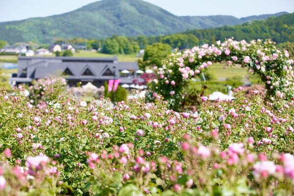 2021年にリニューアルし、五感で楽しめるバラ園に。「洗練された空間で約900品種のバラを観賞できるのはもちろん、『バラ農家に招かれる』がコンセプトのレストランやカフェ、マーケットも充実しています。また、アロマミスト作りや季節の花摘み体験など、『100の体感アクティビティ』を開催しているのも魅力」。(舩山さん。以下同)