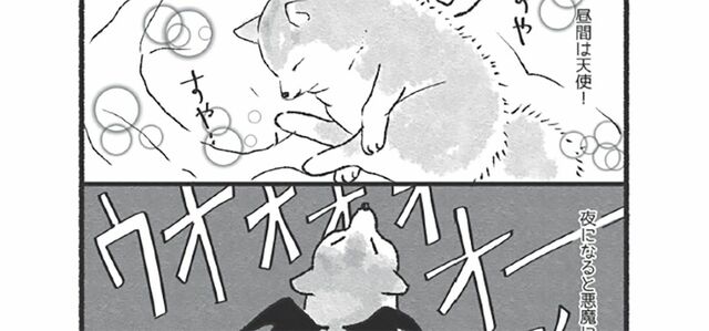 どこかつらいのか、苦しいのか、痛いのかと思いきや、明け方になればすやすやと気持ちよさそうに寝ている。昼間は鳴き声ひとつ立てない。実にかわいいおばあちゃん犬だ。それが夜になると悪魔に変身!