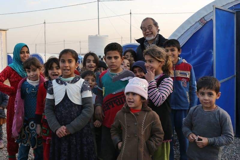 記事本文へ戻る イラクの難民キャンプにて子どもたちと(写真提供:鎌田さん) 「2025年で医者になって50年。その間、多くの《死》を見てきました。わりあい《いい死》をたくさん見てきましたが、なかには《残念な死》もあります」(撮影:難波雄史)