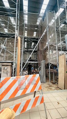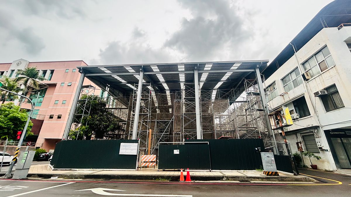 足場の奥にかろうじて見える西区四維街日式招待所