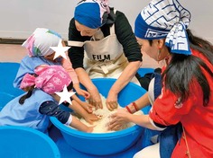 食育について勉強中の安藤さんは、長女・桃子さん(右)、孫と味噌づくり(写真提供:安藤さん)