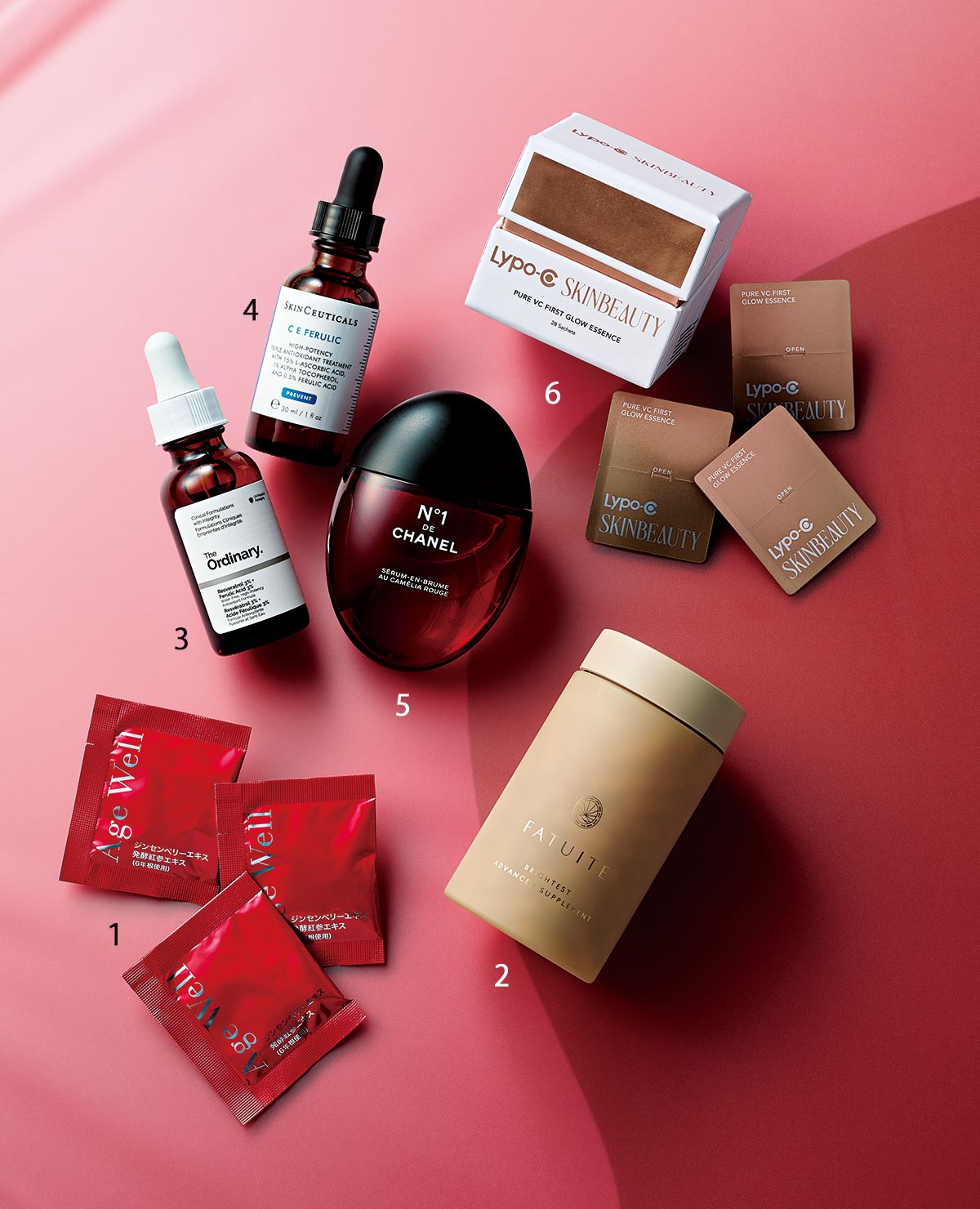秋のスキンケアで重要な、夏に受けたダメージを老化につなげない活性酸素対策。ビタミンA、C、E、ポリフェノール、アスタキサンチンなどの抗酸化成分を取り入れて