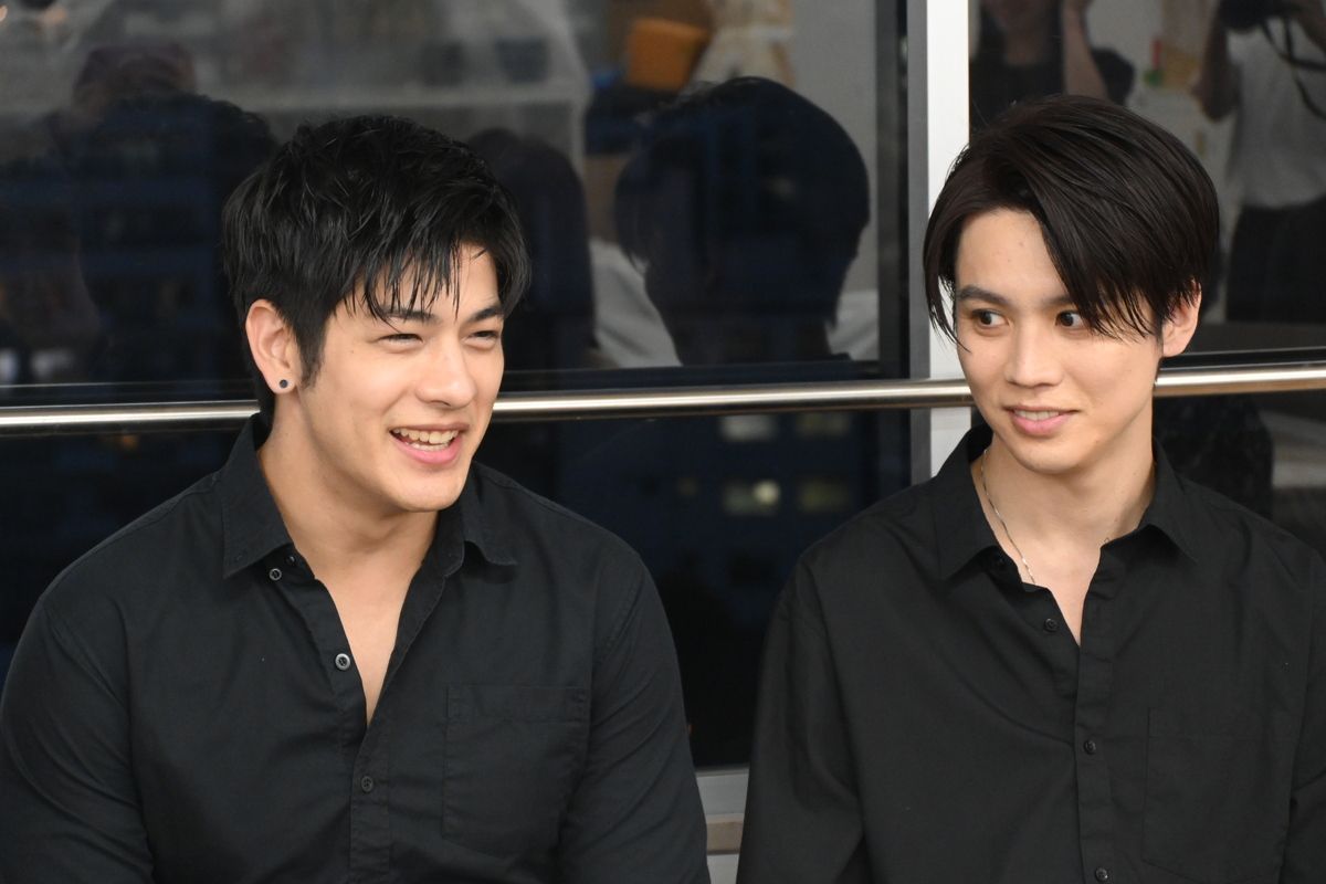 笑顔で取材に応じるルーク(左)とリョウタ