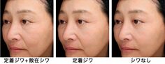 目尻や額などの定着ジワと、顔に無数にある薄く細かい散在シワ。散在シワは光の反射を妨げて、肌全体を暗く見せる 画像(合成)提供/ポーラ化成工業 研究所