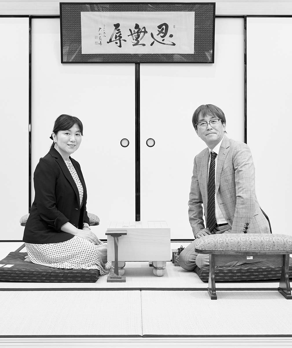 記事本文へ戻る 「どこか突き抜けた、天才でありながらダメダメな人に私は惹かれてしまうし、登場人物に投影したくなります」(柚月さん) 作家の柚月裕子さん(左)と、棋士の羽生善治九段(右)(撮影:大河内禎)