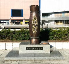 水戸駅前に鎮座する「水戸の納豆記念碑」(写真:婦人公論.jp編集部)