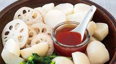 酸味と辛み、甘みの三位一体の味を野菜とともに『冬野菜の温サラダ梅唐辛子みりんソースで』