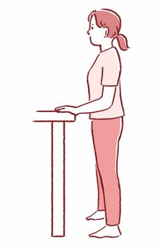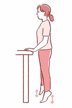 2)両足のかかとをゆっくり上げてつま先立ちし、ゆっくり元の姿勢に戻す