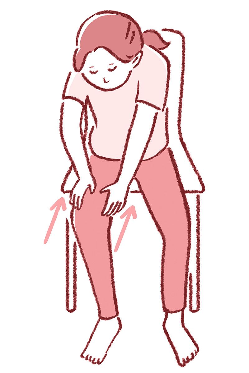 1)両手でさするように、脚の付け根に向かって数回動かす