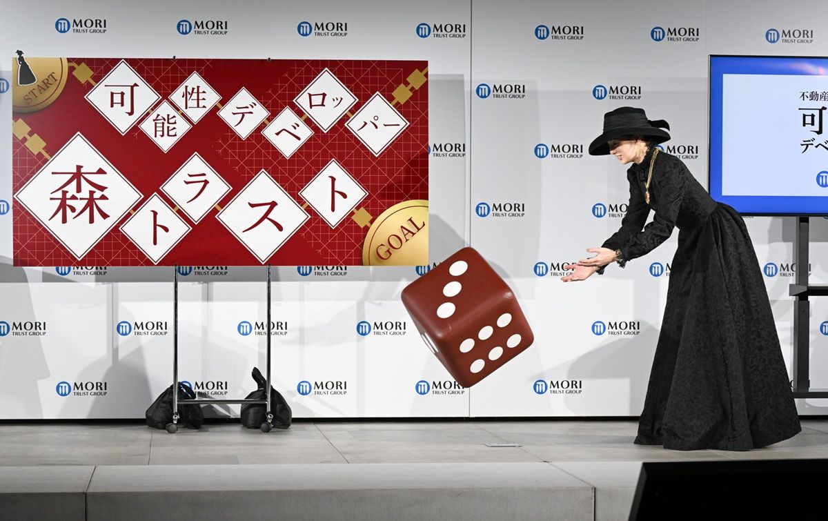 森トラスト初CM発表会でサイコロを振る北川景子さん