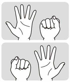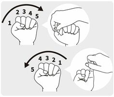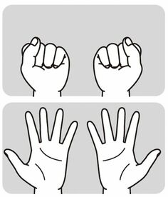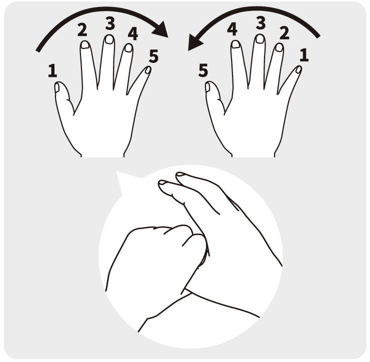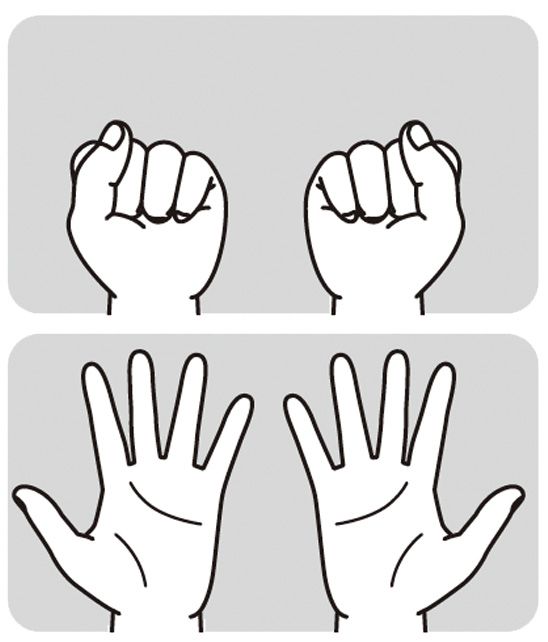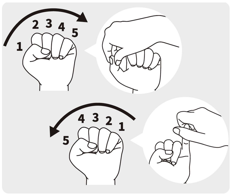 片方の手でこぶしを作り、反対の手で親指から小指まで順番に開いて伸ばす