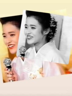 34年前、薄藤色の着物を着て婚約会見に臨む三田さん