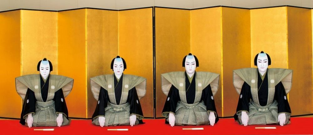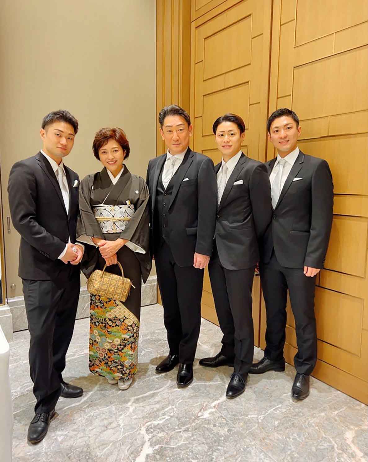中村家ご一家で。 左から、福之助さん、三田さん、芝翫さん、歌之助さん、橋之助さん(写真提供:プントリネア)