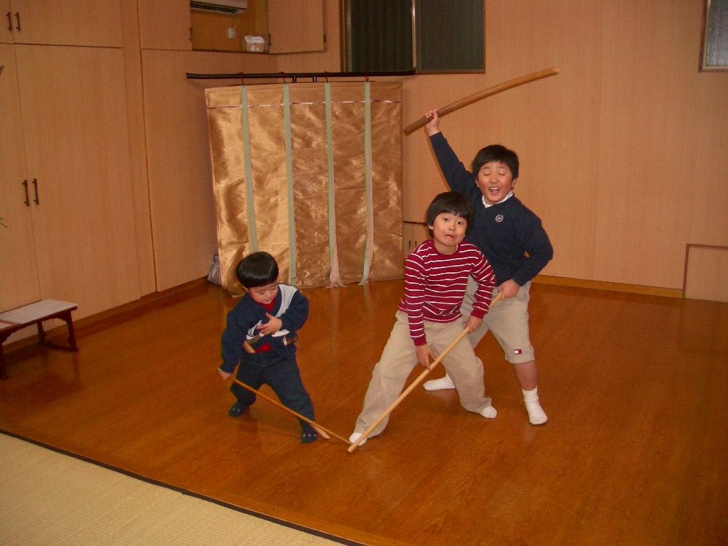 芝居ごっこを楽しむ幼い頃の三兄弟