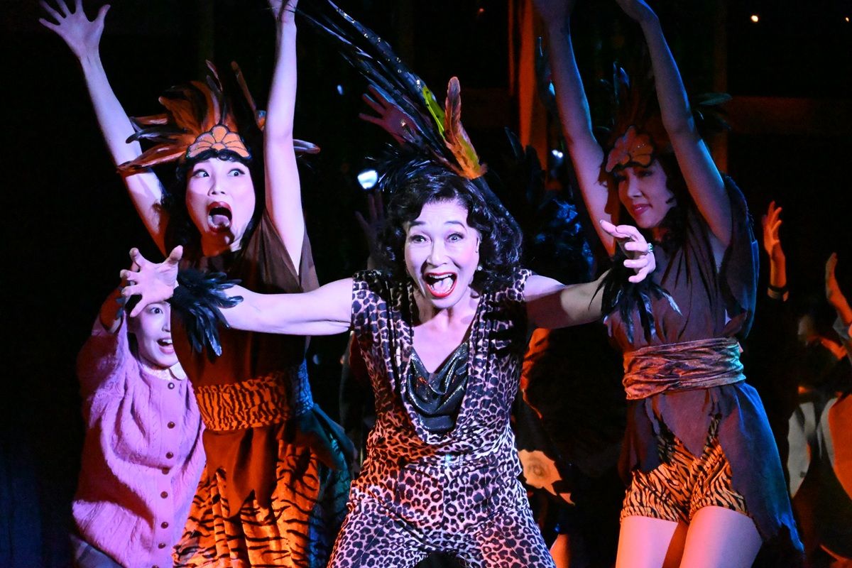 記事本文へ戻る 『わが歌ブギウギ-笠置シヅ子物語-』(写真提供:松竹株式会社) 笠置シヅ子を演じたキムラ緑子(中央)が力強いパフォーマンスを見せた 戦後の日本を歌声で元気づけたシヅ子(中央、キムラ緑子)