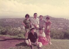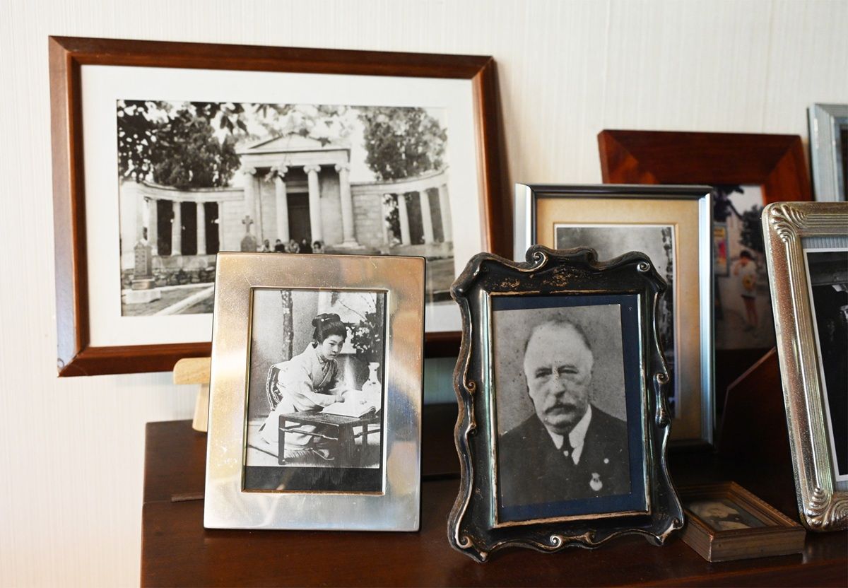 祖父のヘンリー・パイク・ブイ(手前右)と若か りし頃の祖母の駒(手前左)、サンマテオの墓の写真(著者提供)