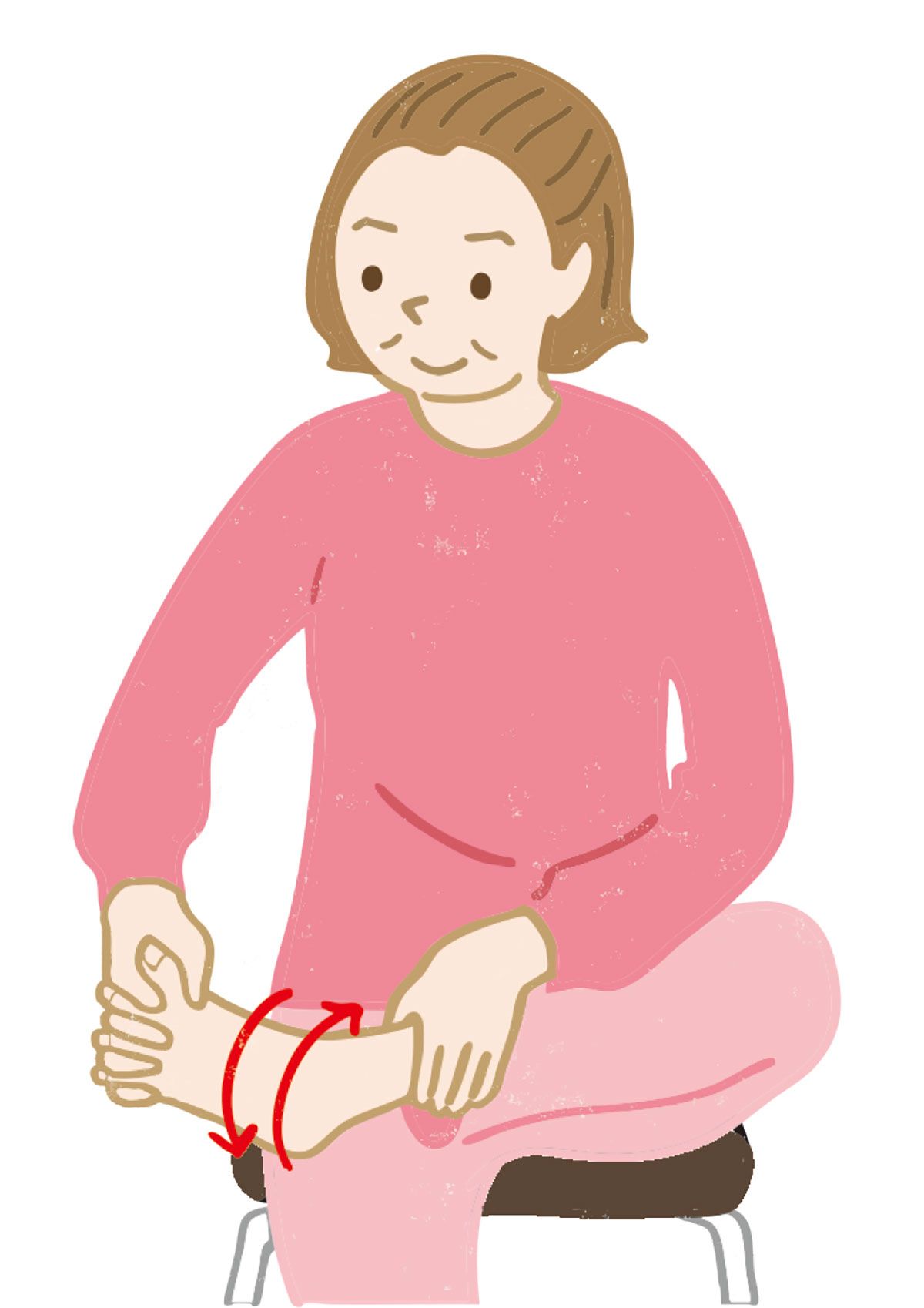 2)少しずつ膝を曲げる。膝がつま先より前に出ないように。無理のないところで止めて、ゆっくり戻す。最初は1回から。無理なくできる回数でOK