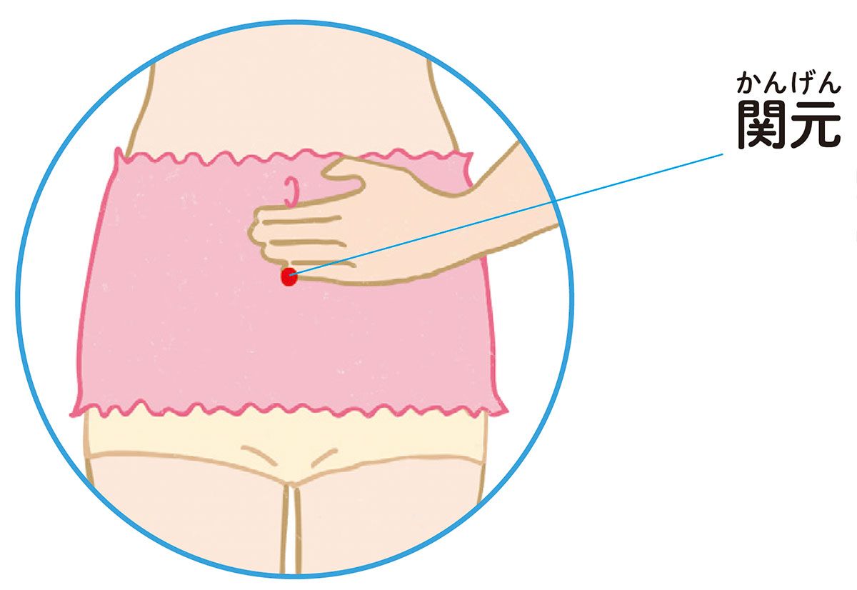 「みぞおちからおへそにかけて、少し高めの位置に腹巻をして胃腸まわりを温めましょう」