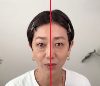 【写真1】昔のやり方でベターっとファンデーションを塗っていくと「老け見え」に。筆者YouTube「40代からのシャレるメイク」より