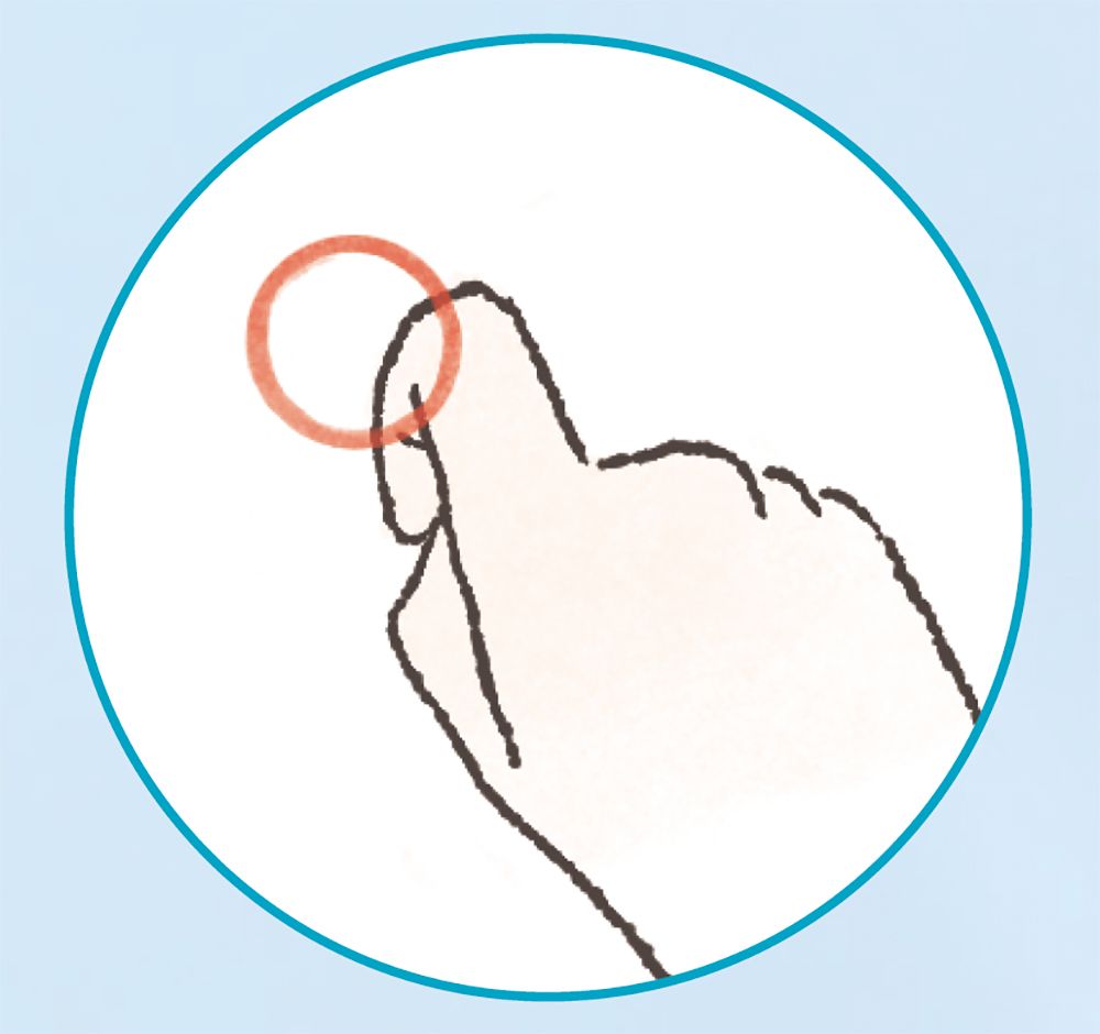 人差し指を曲げた第2関節の、親指側の角を