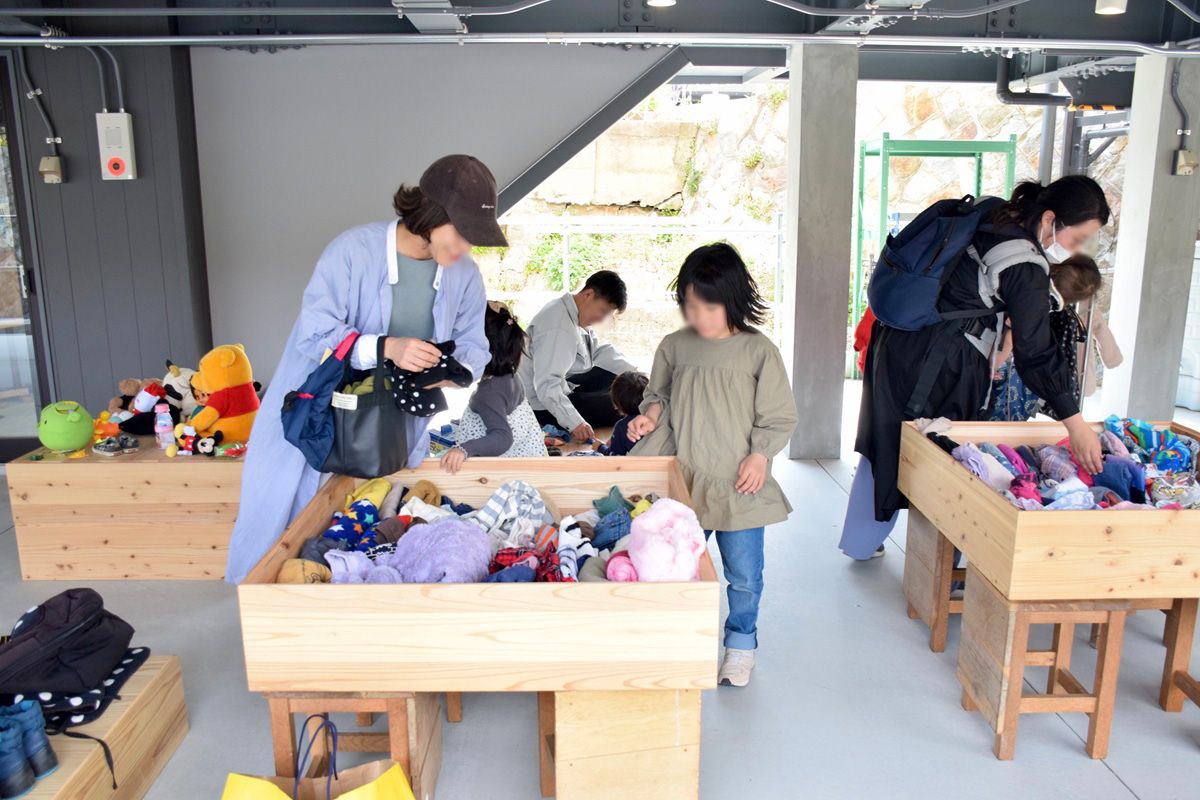 記事本文へ戻る ペット用品が子ども用品に「京都府亀岡市」(右写真提供:京都府亀岡市/左:筆者撮影) 2024年8月にオープンした建物は、市民が集まる場に(写真提供:京都府亀岡市) ペット用マットを介して交流が生まれた(筆者撮影)