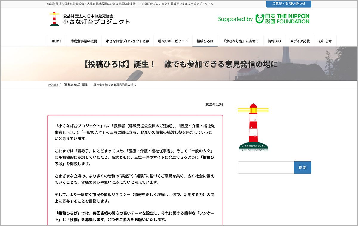 『小さな灯台プロジェクト』で「投稿ひろば」ページを開設。初回の募集テーマは《Time limited trial(お試し期間)》
