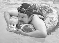 メッシュ素材のペロちゃんと水遊び(写真提供:大和田さん)