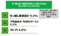 記事本文へ戻る 引っ越しで特にストレス・面倒に感じたことは何ですか?(株式会社マイベスト調べ) (写真:AdobePhotoStock) 引っ越し後に「選択を失敗した」と感じたものはなんですか?(株式会社マイベスト調べ)