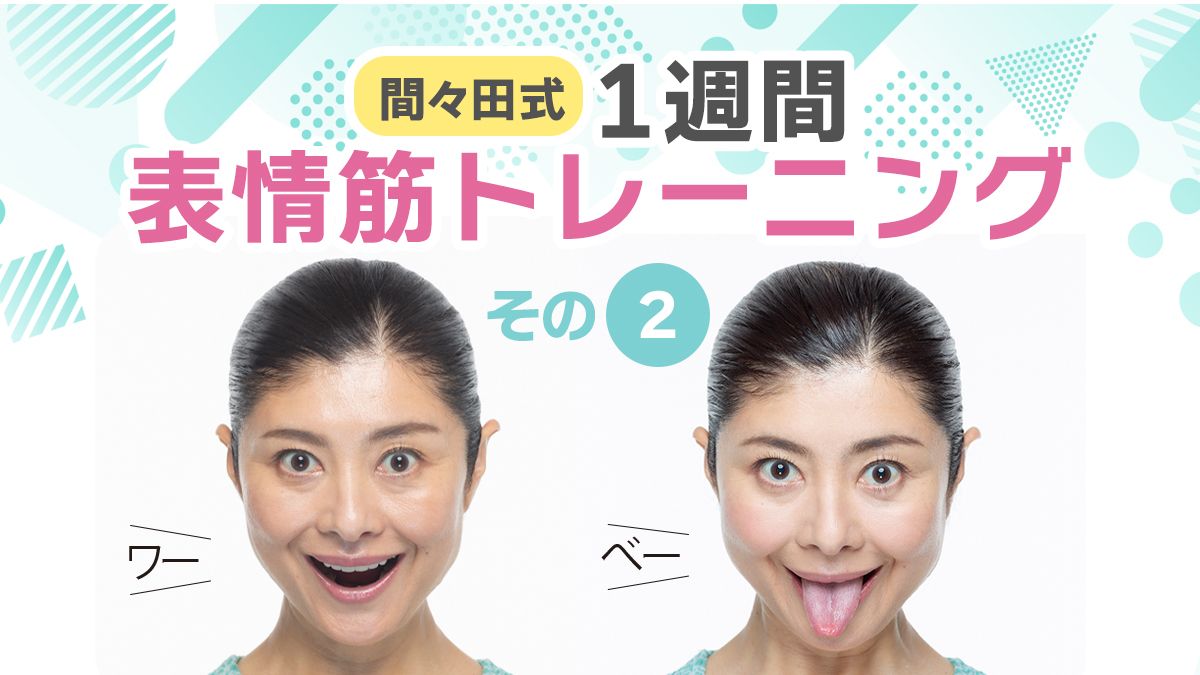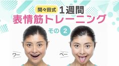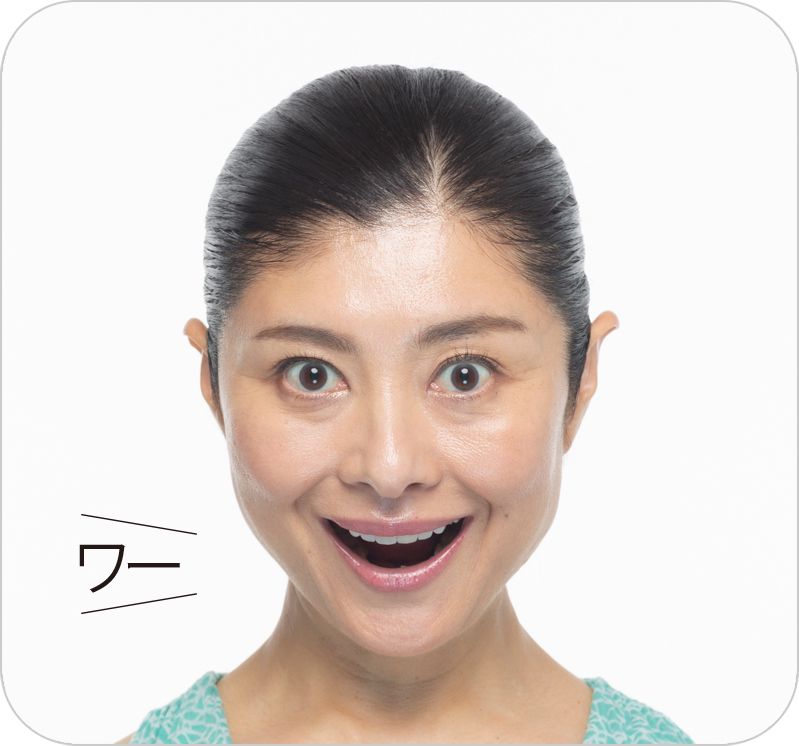 目を大きく開き、「ワー」と声を出しながら、頬を持ち上げる