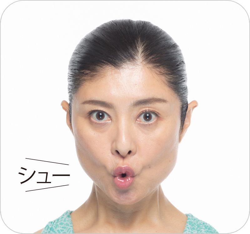 口をすぼめて前に突き出し、「シュー」と息を吐く。目も大きく見開いて