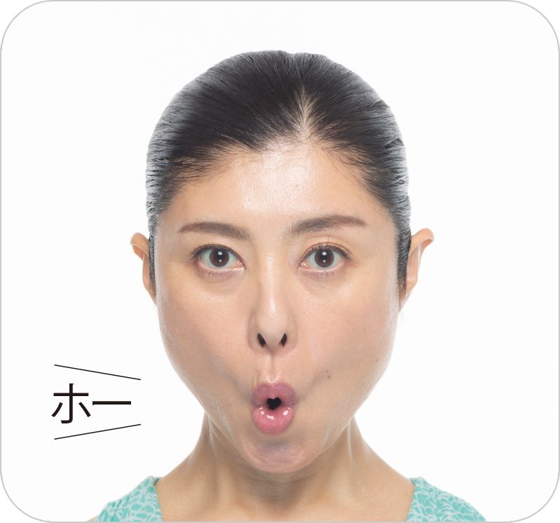 鼻の下を伸ばしながら「ホー」と息を吐く。顔を縦に伸ばすイメージで