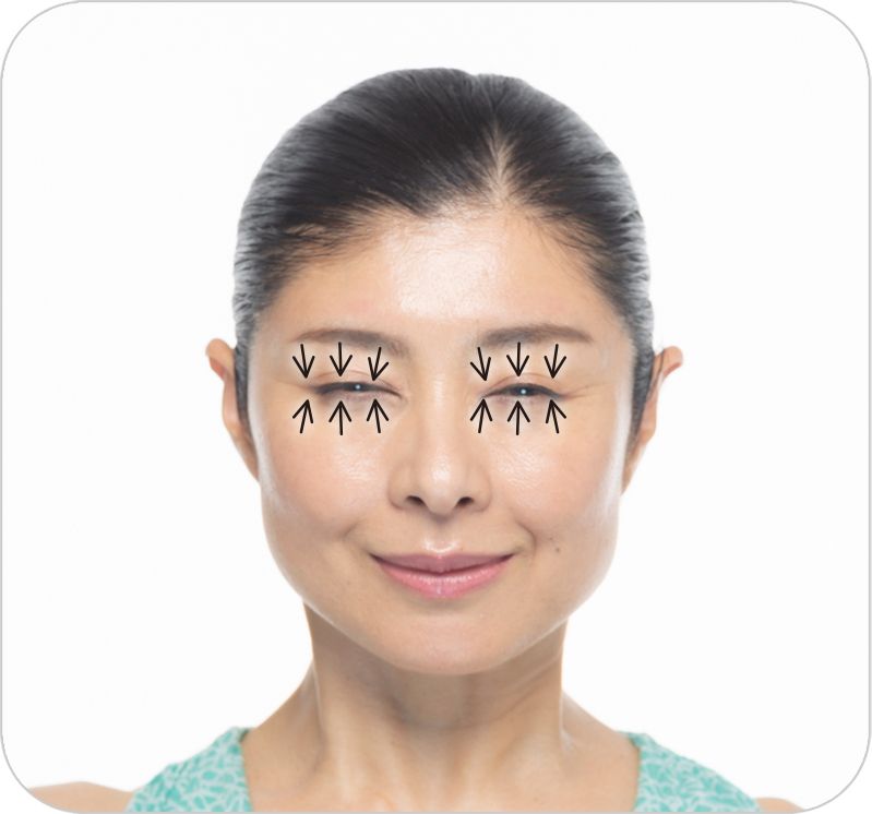 手を離し、目を細めた状態を5秒キープ。目の周りの筋肉に緊張を感じればOK。3セット行う