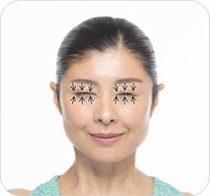 目尻に手を当てて軽く外側に引っぱり、まぶしいものを見るように目を細める