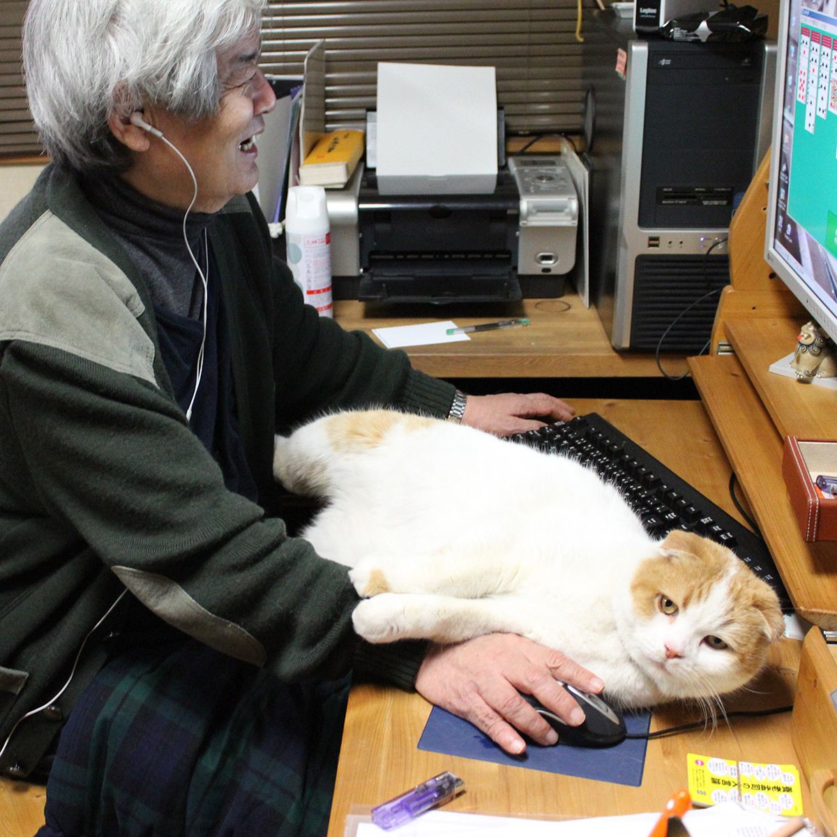書斎の仕事机もまるのお気に入りの場所。キーボードの上に乗ることもしばしば(写真提供:marustagram_yoro)