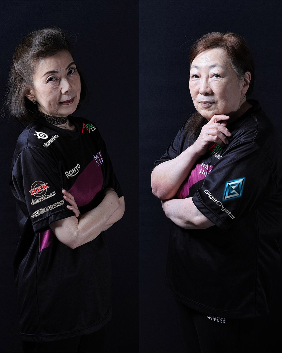 記事本文へ戻る 秋田で活躍するプロチーム、マタギスナイパーズ(写真提供:マタギスナイパーズ) 左からNAGIさん(66歳)、CaitSithさん(74歳)。チームのコンセプトは「孫にも一目置かれる存在」(写真提供:マタギスナイパーズ)