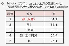 「ポツポツ」が出来たことがある箇所について(図:クラシエ薬品株式会社)