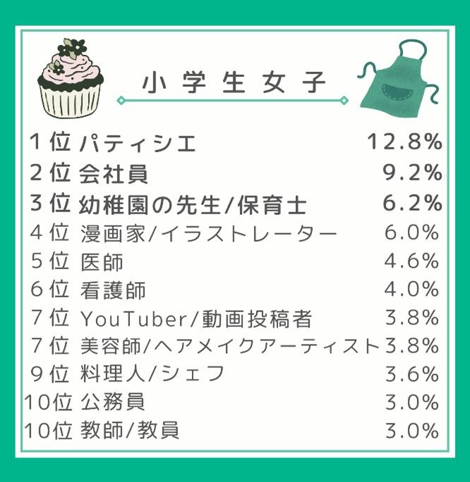 小学生女子の「あなたが大人になったらなりたい職業について」(出典:第一生命保険株式会社)