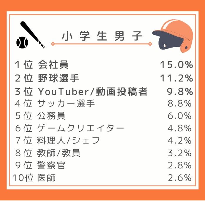小学生男子の「あなたが大人になったらなりたい職業について」(出典:第一生命保険株式会社)