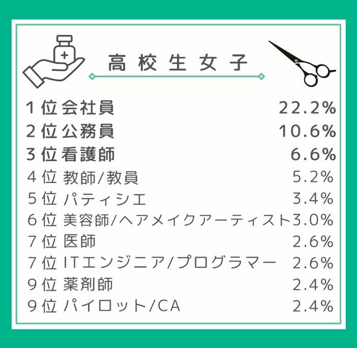 高校生女子の「あなたが大人になったらなりたい職業について」(出典:第一生命保険株式会社)