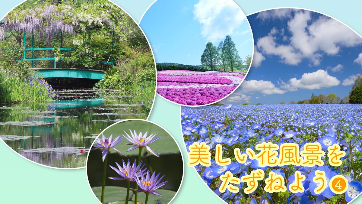 丘を覆い尽くす100万本のネモフィラと30万株の芝桜は西日本最大級。ブルーとピンクに染まる丘は写真映え抜群。6月からはあじさいも楽しめる